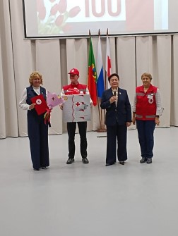 После краткого вступительного слова председателя Первоуральского МО РКК Светланы Александровны ТУХВАТУЛЛИНОЙ было прослушано видеопоздравление от председателя Российского Красного Креста Павла Олеговича САВЧУКА (г. Москва).