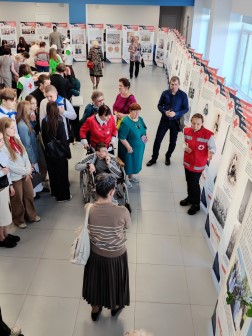 Сотрудник нашего музея В. В. ТХОРЖЕВСКАЯ провела для собравшихся экскурсию по фотовыставке «ИСТОРИЯ ДОБРА И МИЛОСЕРДИЯ», посвященной полуторавековому пути Свердловского регионального отделения РКК. Силами сотрудников местного отделения РКК в фойе была развёрнута интереснейшая выставка по истории советского Красного Креста в Первоуральске.