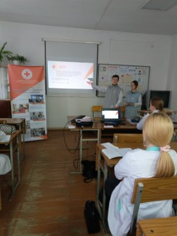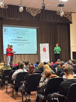 О необходимых навыках первой психологической помощи для будущих медиков рассказали волонтёры: Меркурьева Кира, Лебедев Никита и педагог-психолог Гаврилова Т.А.