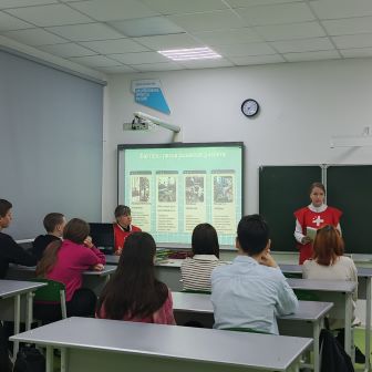 28.10.2025 года в рамках проекта "С заботой о родных" волонтеры Красноуфимского местного отделения ВОД «Волонтеры-медики» Черемнова Александра и Иглина Екатерина под руководством преподавателя Сердитовой Г.А., провели профилактическую беседу для студентов ГАПОУ "Красноуфимский многопрофильный техникум", где рассказали ребятам о симптомах, мерах профилактики и первой помощи. В беседе приняли участие 170 студентов первого курса разных специальностей. Беседа вызвала положительный отклик, ребятам было интересно.
