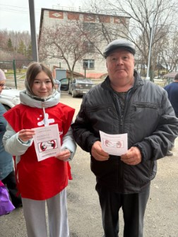 Волонтеры Красноуфимского местного отделения ВОД «Волонтеры медики» поздравили жителей города с наступающим праздником С Днем Победы и вручили им георгиевские ленточки.
