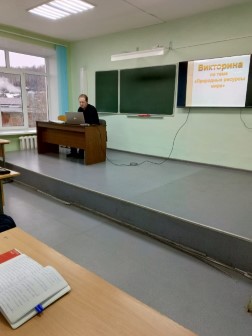 Студенты узнали, что проблемы качества жизни напрямую связывались с природными ресурсами ещё с древних времен. Учащиеся приняли участие в викторине и узнали много интересного. В нашей стране к добыче ресурсов всегда было особое отношение. Богатый ресурсный потенциал РФ был и является определяющим фактором могущества государства.