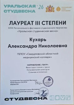 В номинации «Художественное слово»: - Лауреат I степени — Полякова Вероника Евгеньевна. - Лауреат II степени — Кухарь Александра Николаевна